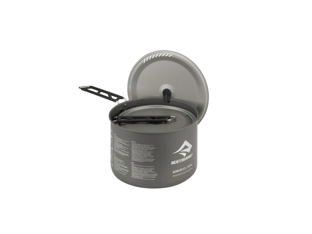 Hrnce Alpha jsou vyrobené z tvrdé eloxované slitiny, jsou trvanlivé, odolné proti oděru a velmi snadno se čistí. Jsou vybavené rukojetí Pivot-Lock, která se během používání bezpečně uzamkne a při skladování se složí, jedinečným vzorem štěrbinového sítka na poklici pro snadný průtok (a pro zadržení špaget a rýže) a silikonovým držákem víka, který se při vaření zahákne za bok hrnce.