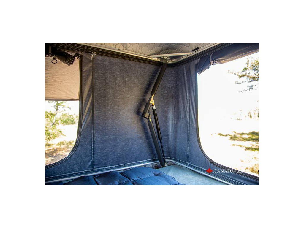 Novinka roku 2023! Střešní stan pro 2-3 osoby s pevnou skořepinou a paralelně otevíratelným horním pláštěm. Silné plynové vzpěry umožňují nastavení během pouhých 30 sekund a navíc jsou natolik stabilizující, že není nutné používat žádné pákové zámky.